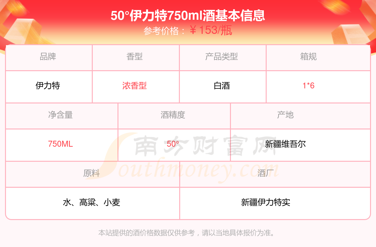 50°伊力特750ml基本信息