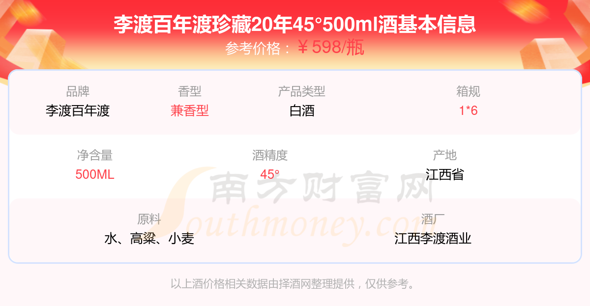 本站提供的酒價(jià)格數(shù)據(jù)僅供參考,請(qǐng)以當(dāng)?shù)鼐唧w報(bào)價(jià)為準(zhǔn)。
