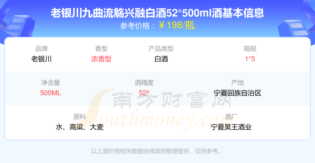 老銀川九曲流觴興融白酒52°500ml基本信息