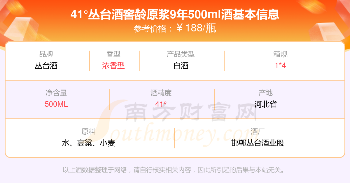41°叢臺(tái)酒窖齡原漿9年500ml基本信息