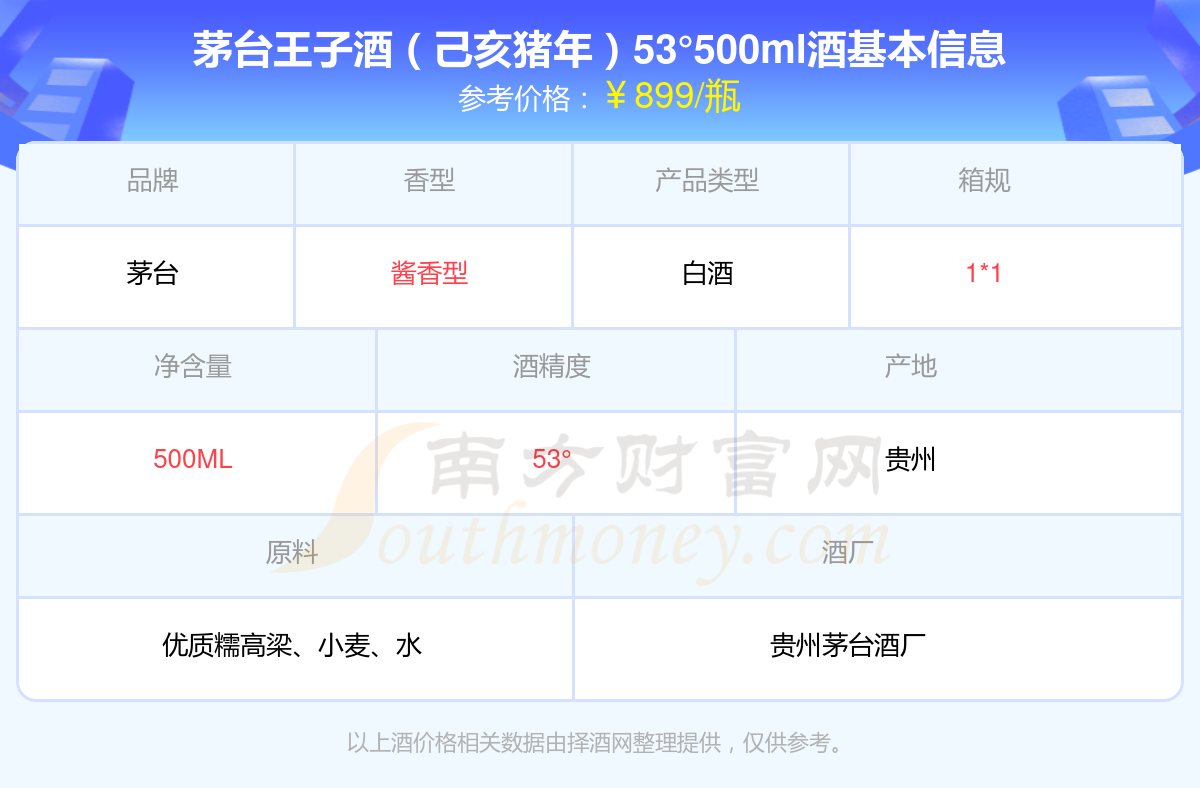 茅臺(tái)王子酒(己亥豬年)53°500ml基本信息