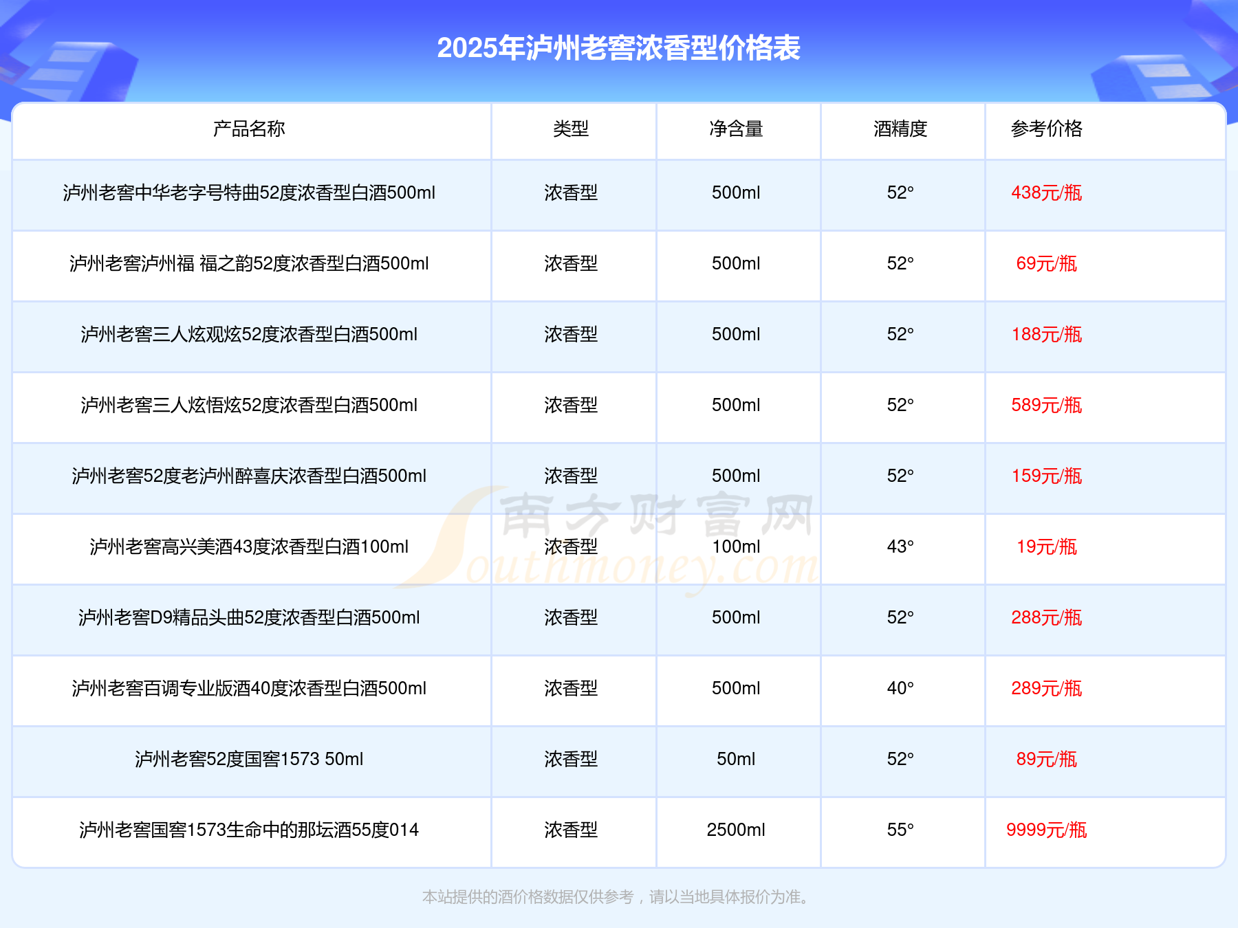 瀘州老窖國窖1573春釀鼠兆豐年E 55度參考價17999元/瓶、瀘州老窖國窖1573生命中的那壇酒55度014參考價9999元/瓶、瀘州老窖國窖1573春釀鼠兆豐年A 55度參考價5088元/瓶、瀘州老窖國窖1573生命中的那壇酒55度013濃香型白酒1000ml參考價4988元/瓶、瀘州老窖國窖1573生命中的那壇酒55度009 1000ml參考價4288元/瓶、瀘州老窖國窖1573中國品味52度濃香型白酒500ml參考價2888元/瓶、瀘州老窖國窖1573許燎源概念作品58度濃香型白酒1000ml參考價2680元/瓶。