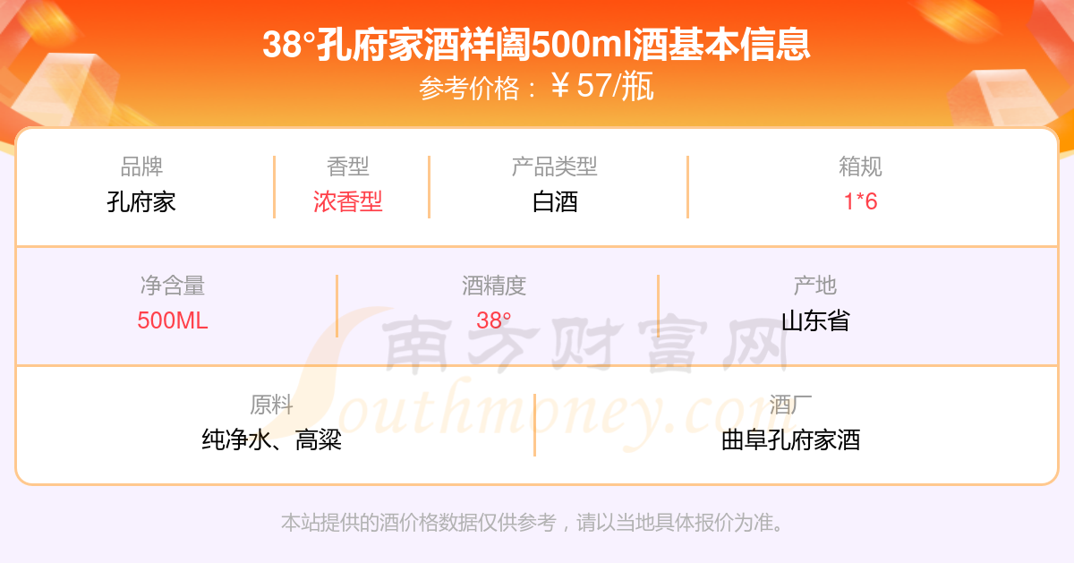 38°孔府家酒祥闔500ml基本信息