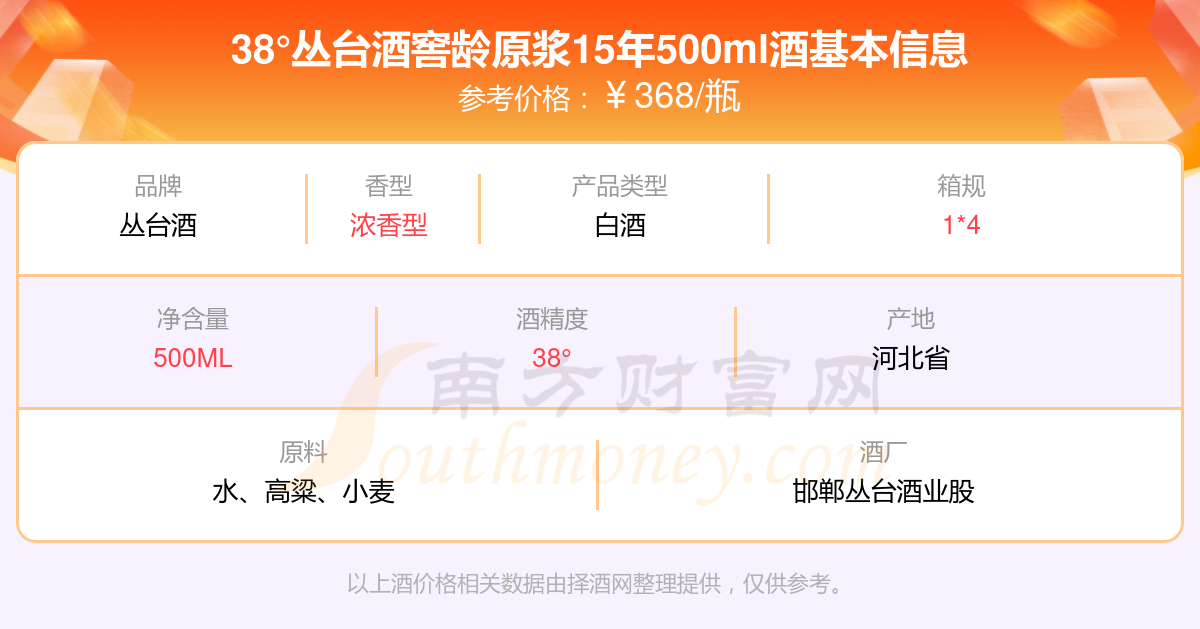 38°叢臺(tái)酒窖齡原漿15年500ml基本信息