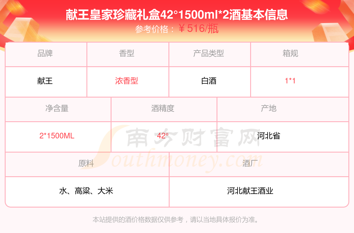 獻(xiàn)王皇家珍藏禮盒42°1500ml*2基本信息