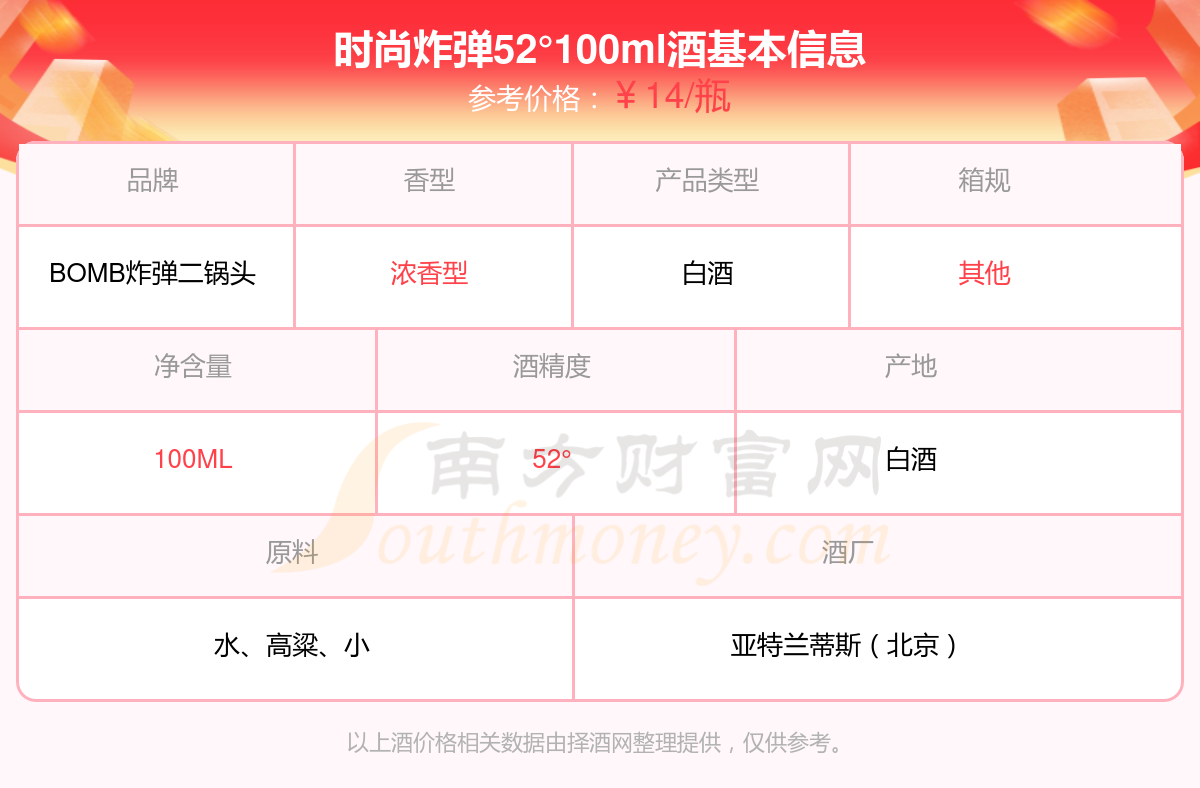 時尚炸彈52°100ml基本信息
