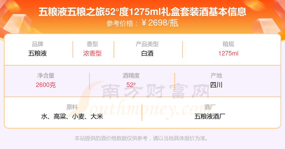 五糧液五糧之旅52°度1275ml禮盒套裝基本信息