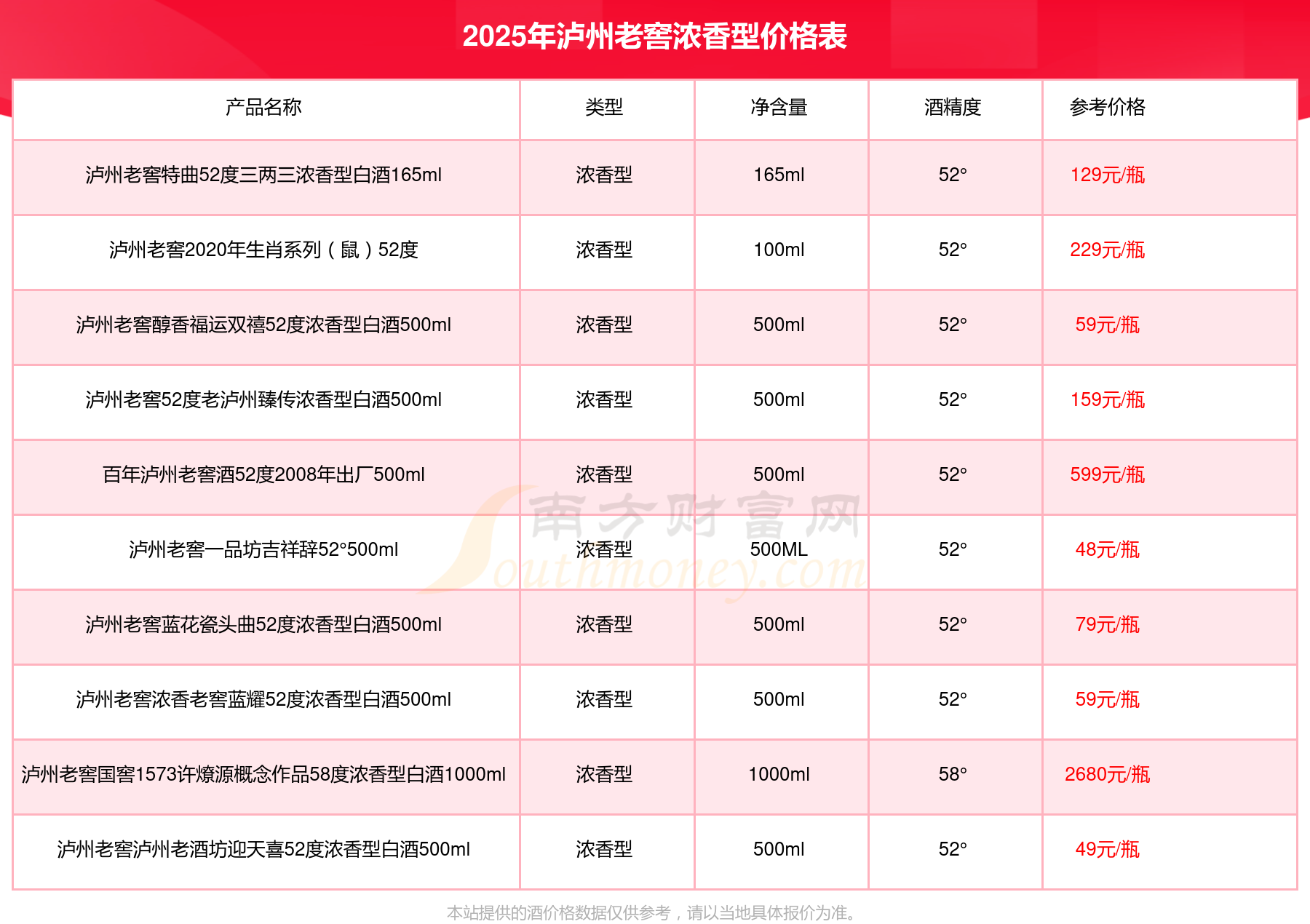 2025年,瀘州老窖國窖1573春釀鼠兆豐年E 55度、瀘州老窖國窖1573生命中的那壇酒55度014、瀘州老窖國窖1573春釀鼠兆豐年A 55度、瀘州老窖國窖1573生命中的那壇酒55度013濃香型白酒1000ml等瀘州老窖濃香型酒價(jià)格如下: