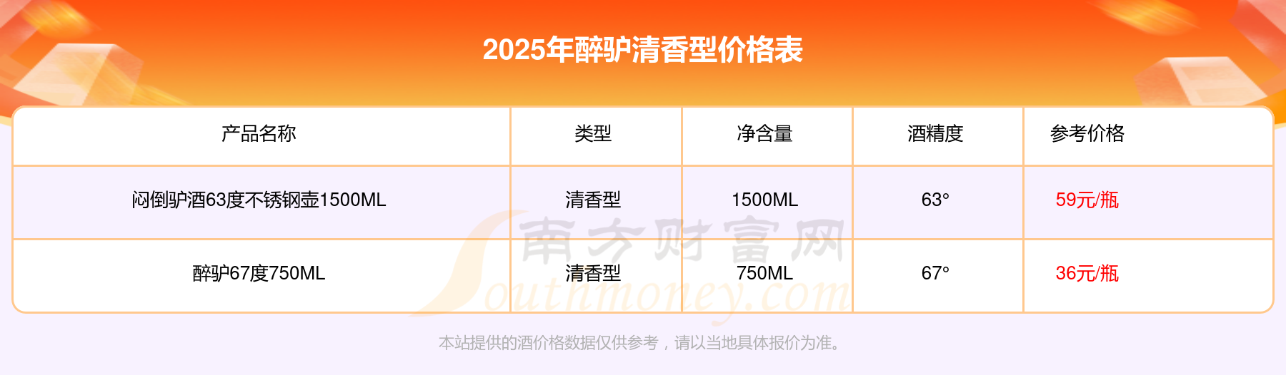 2025年,悶倒驢酒63度不銹鋼壺1500ML、醉驢67度750ML等醉驢清香型酒價(jià)格如下: