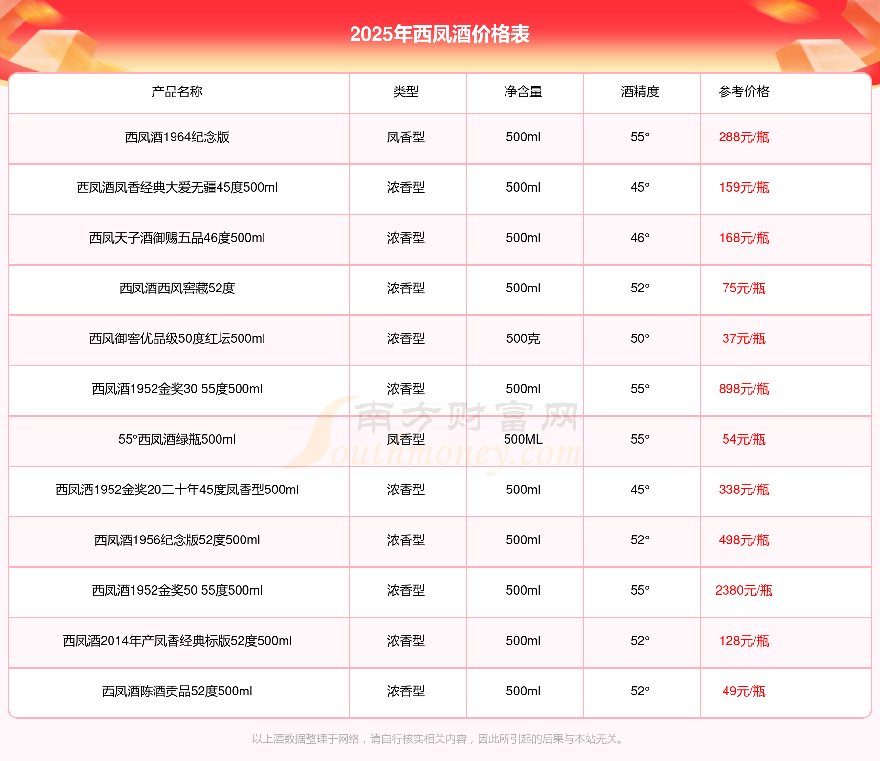 以上酒數(shù)據(jù)整理于網(wǎng)絡(luò),請自行核實(shí)相關(guān)內(nèi)容,因此所引起的后果與本站無關(guān)。