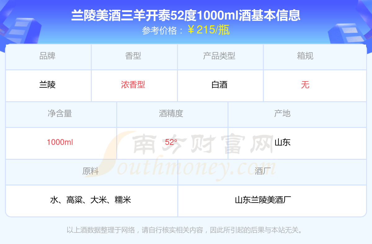 蘭陵美酒三羊開泰52度1000ml基本信息