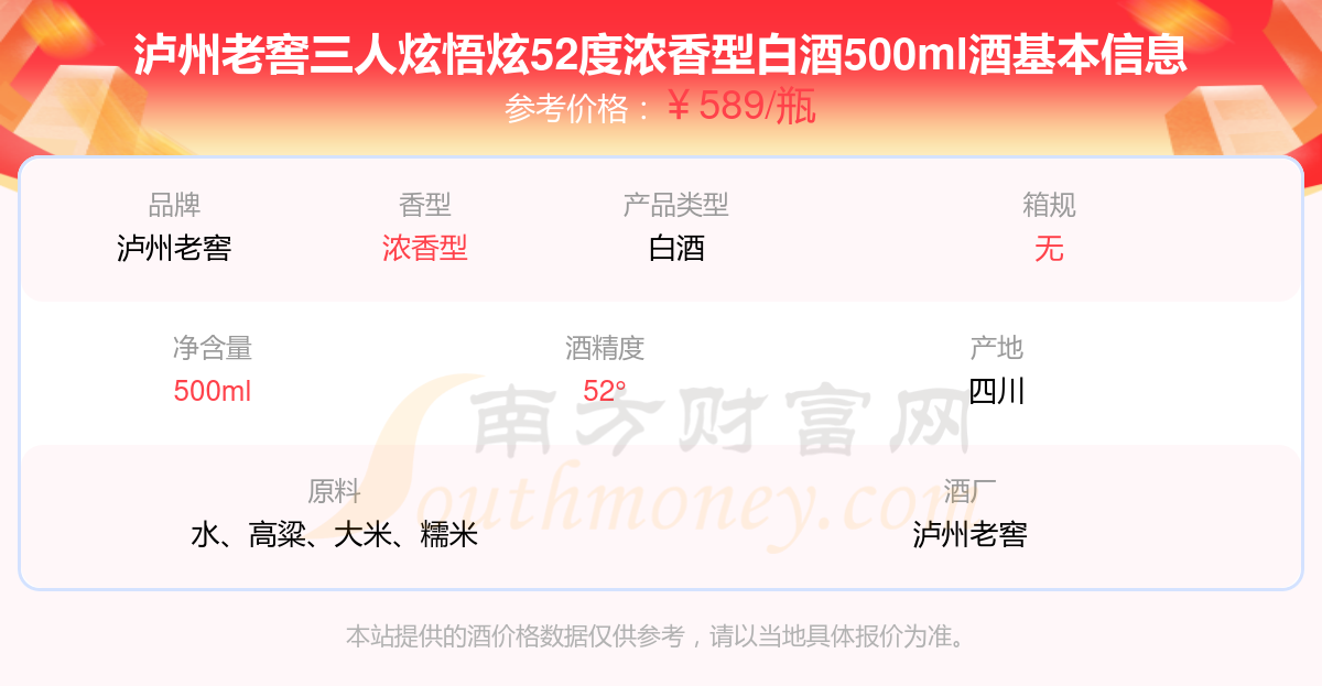 瀘州老窖三人炫悟炫52度濃香型白酒500ml基本信息