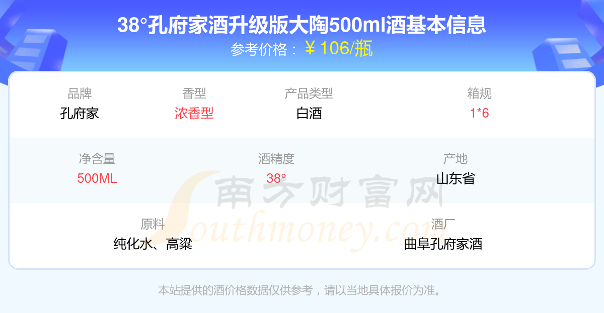38°孔府家酒升級版大陶500ml基本信息