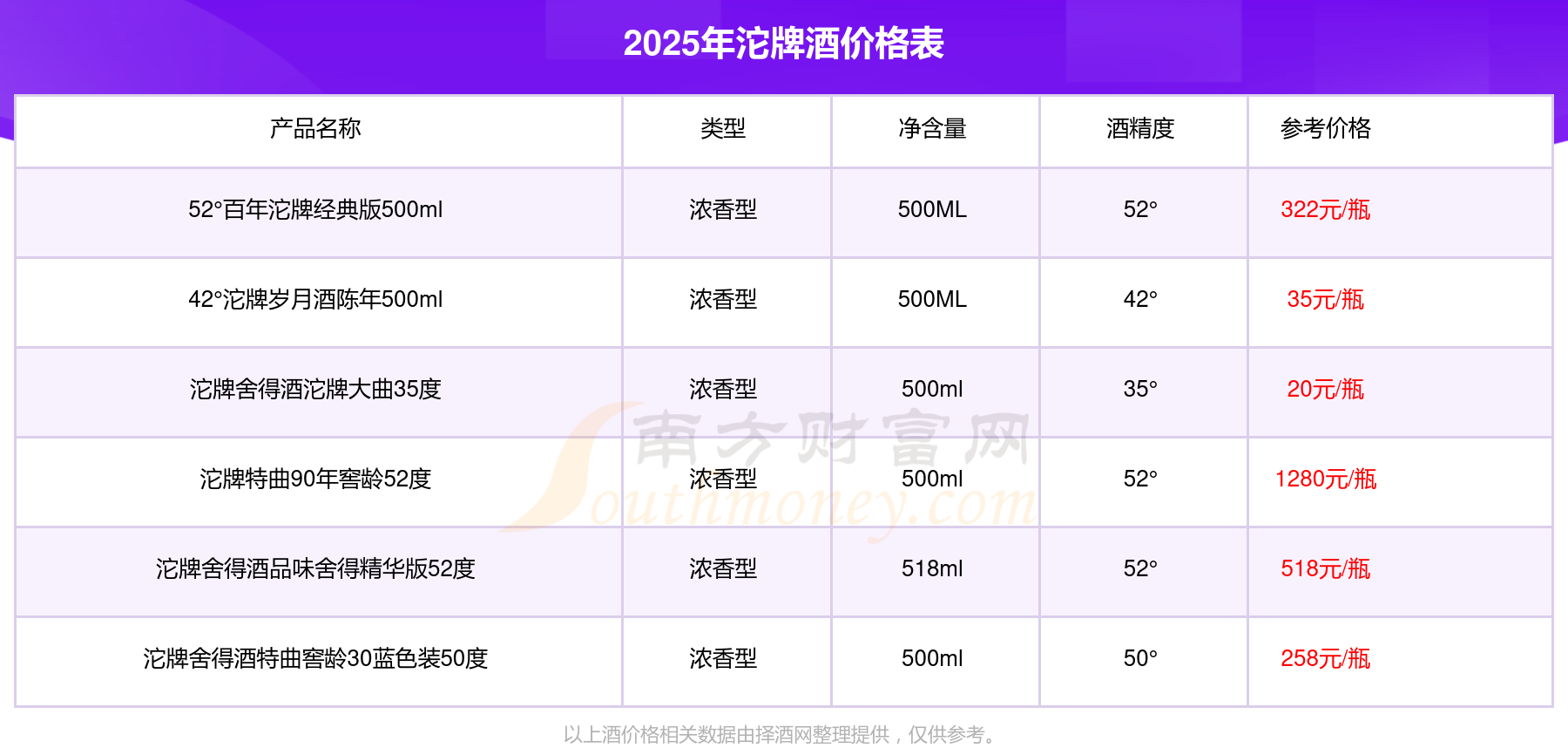 2025年,沱牌特曲90年窖齡52度、沱牌舍得酒品味舍得精華版52度、52°百年沱牌經(jīng)典版500ml、沱牌舍得酒特曲窖齡30藍(lán)色裝50度、42°沱牌歲月酒陳年500ml、沱牌舍得酒沱牌大曲35度等沱牌酒價(jià)格如下:沱牌特曲90年窖齡52度參考價(jià)1280元/瓶、沱牌舍得酒品味舍得精華版52度參考價(jià)518元/瓶、52°百年沱牌經(jīng)典版500ml參考價(jià)322元/瓶、沱牌舍得酒特曲窖齡30藍(lán)色裝50度參考價(jià)258元/瓶、42°沱牌歲月酒陳年500ml參考價(jià)35元/瓶、沱牌舍得酒沱牌大曲35度參考價(jià)20元/瓶。