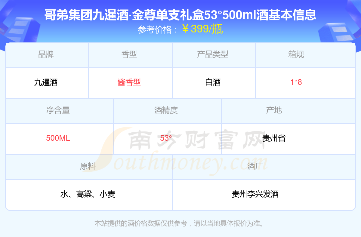 哥弟集團(tuán)九暹酒·金尊單支禮盒53°500ml基本信息