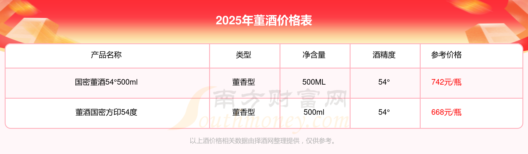 2025董酒最新價格:國密董酒54°500ml參考價742元/瓶、董酒國密方印54度參考價668元/瓶。