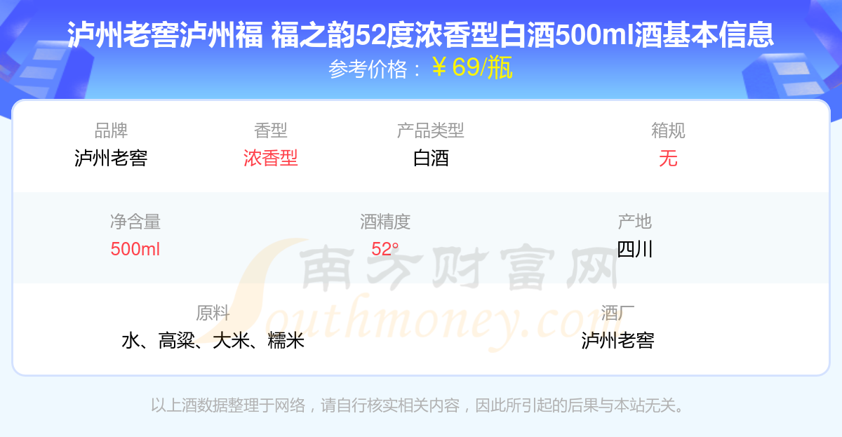 瀘州老窖瀘州福 福之韻52度濃香型白酒500ml基本信息