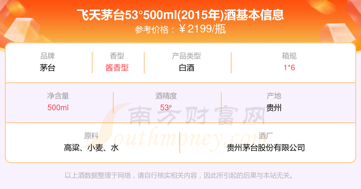 飛天茅臺(tái)53°500ml(2015年)基本信息