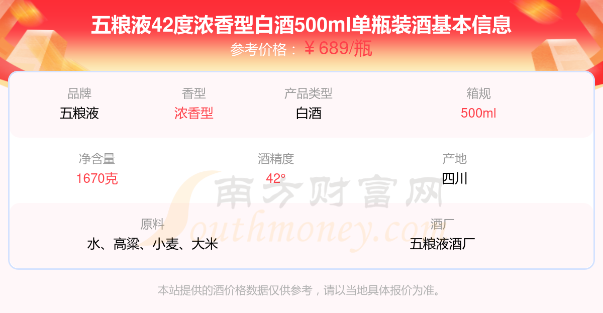 五糧液42度濃香型白酒500ml單瓶裝基本信息