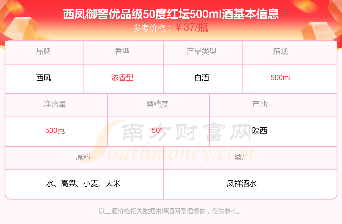 西鳳御窖優(yōu)品級50度紅壇500ml基本信息