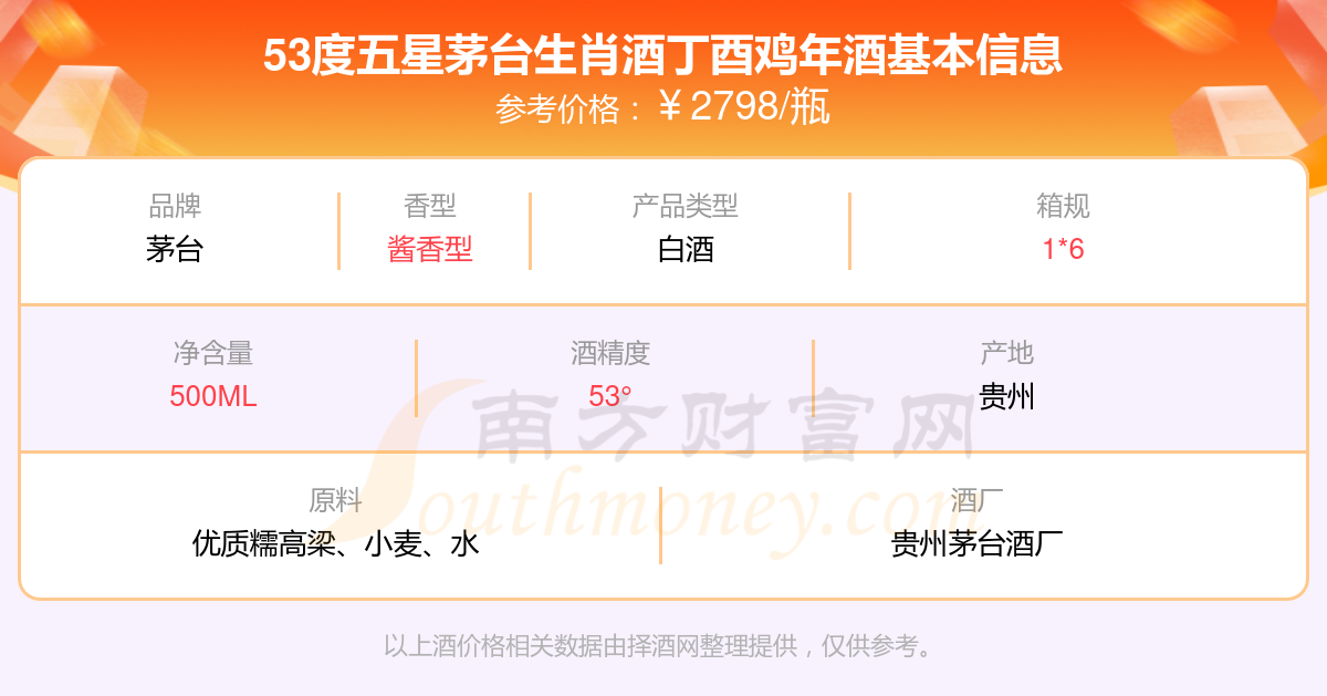 53度五星茅臺生肖酒丁酉雞年基本信息