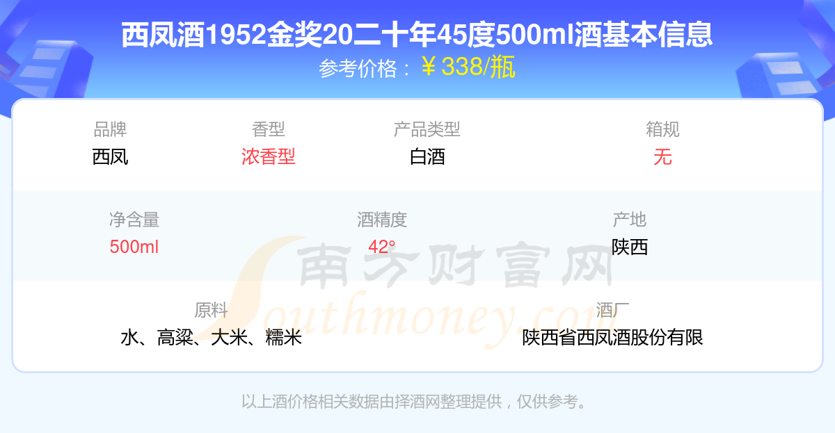 西鳳酒1952金獎20二十年45度500ml基本信息