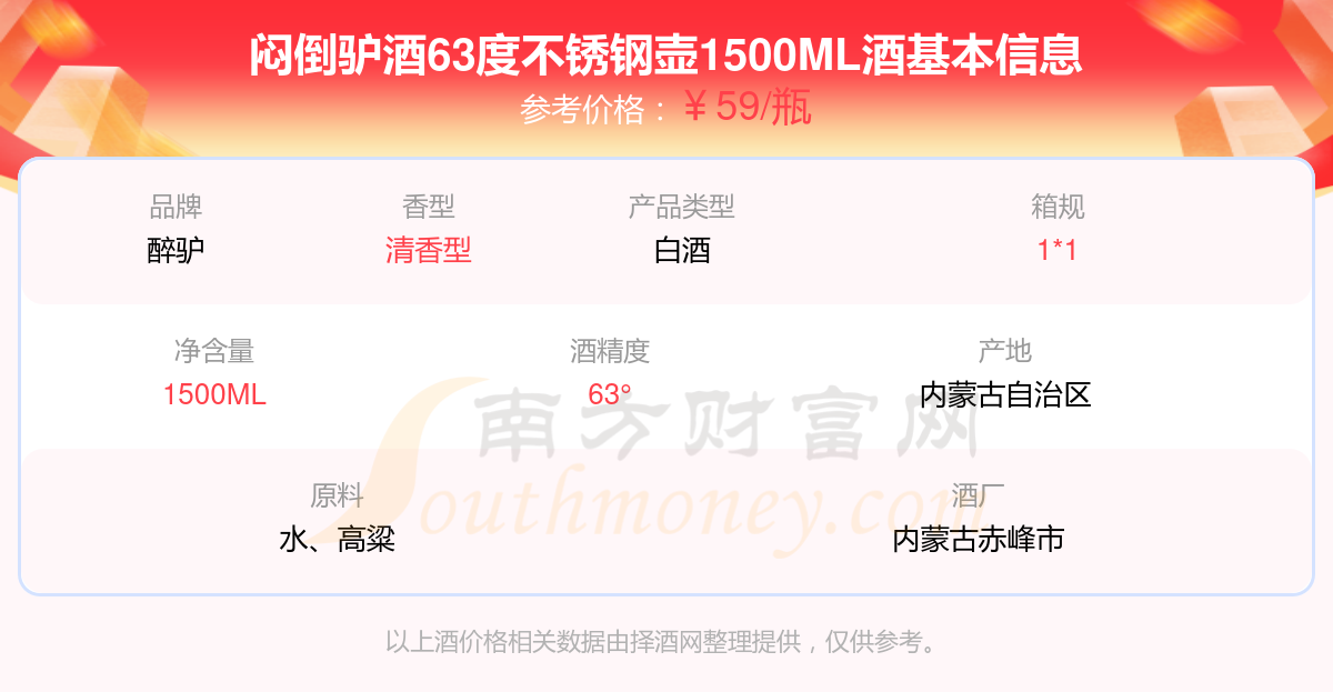 悶倒驢酒63度不銹鋼壺1500ML基本信息