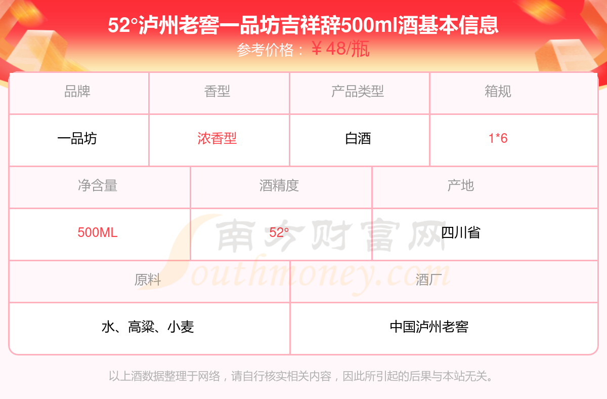 52°瀘州老窖一品坊吉祥辭500ml基本信息