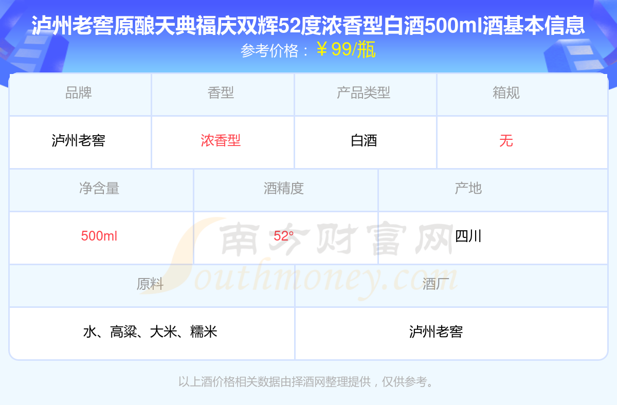 瀘州老窖原釀天典福慶雙輝52度濃香型白酒500ml基本信息