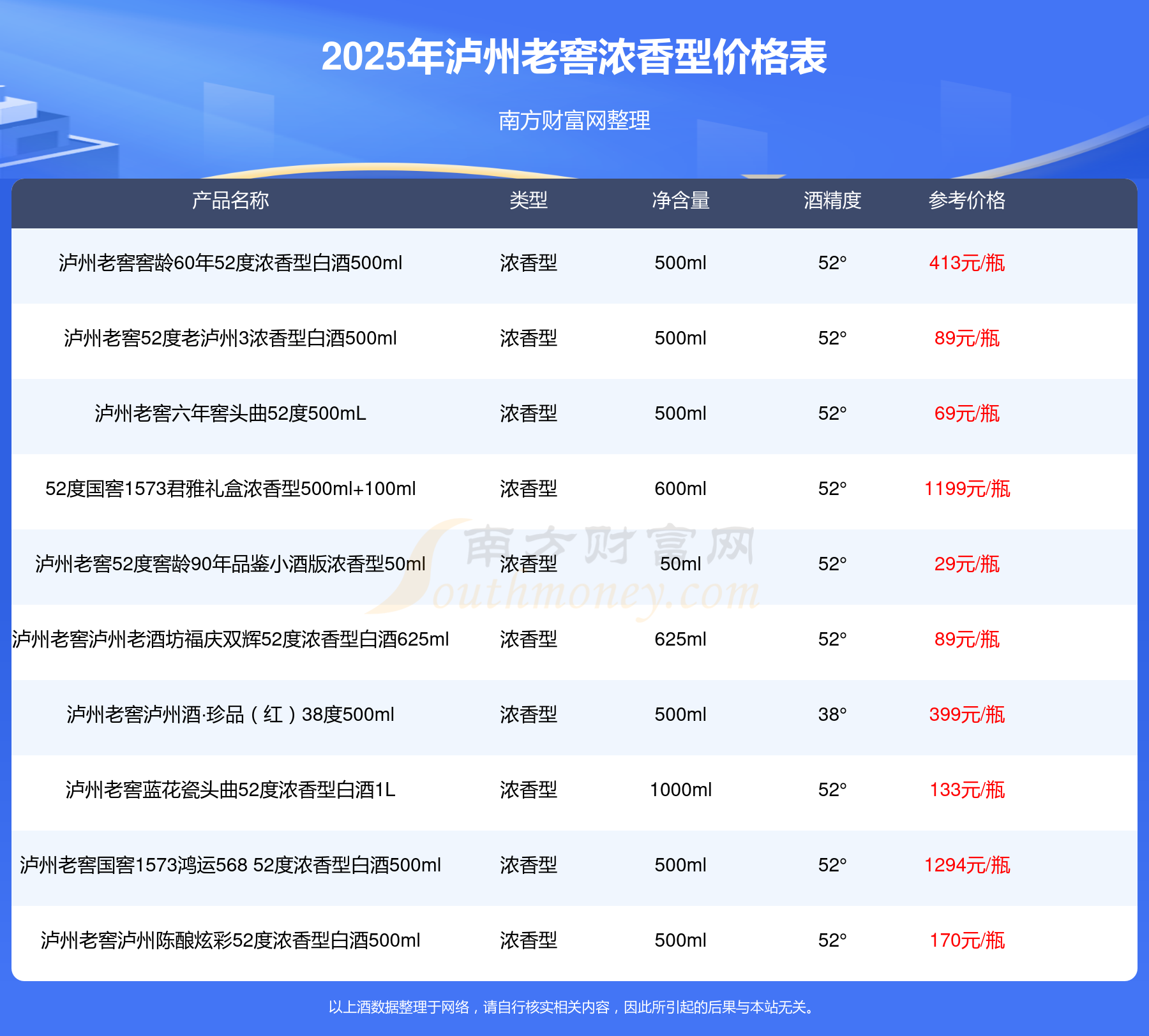 瀘州老窖國窖1573春釀鼠兆豐年E 55度參考價17999元/瓶、瀘州老窖國窖1573生命中的那壇酒55度014參考價9999元/瓶、瀘州老窖國窖1573春釀鼠兆豐年A 55度參考價5088元/瓶、瀘州老窖國窖1573生命中的那壇酒55度013濃香型白酒1000ml參考價4988元/瓶、瀘州老窖國窖1573生命中的那壇酒55度009 1000ml參考價4288元/瓶、瀘州老窖國窖1573中國品味52度濃香型白酒500ml參考價2888元/瓶、瀘州老窖國窖1573許燎源概念作品58度濃香型白酒1000ml參考價2680元/瓶。