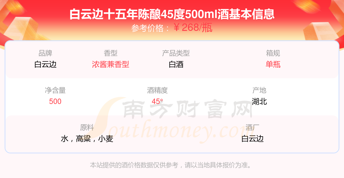 白云邊十五年陳釀45度500ml基本信息