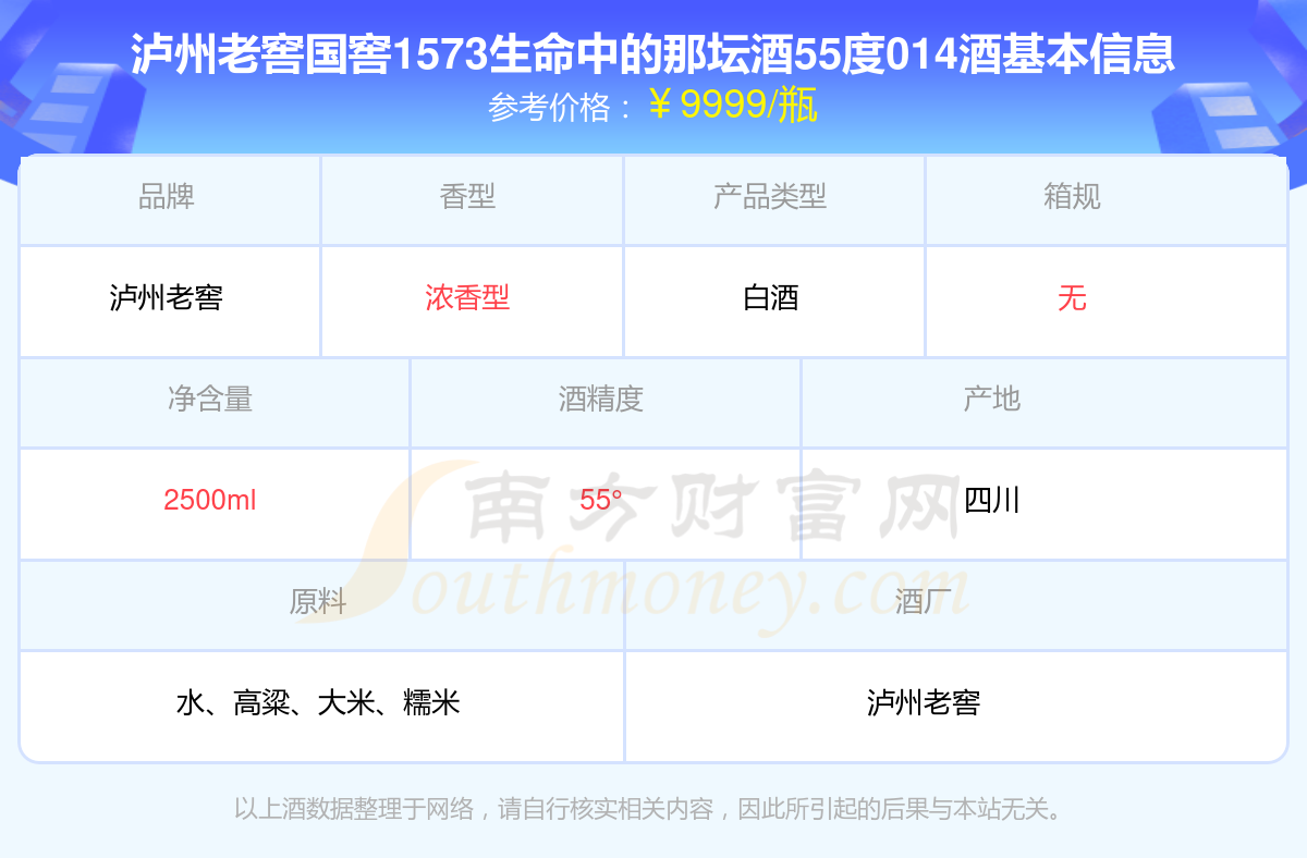 瀘州老窖國窖1573生命中的那壇酒55度014基本信息