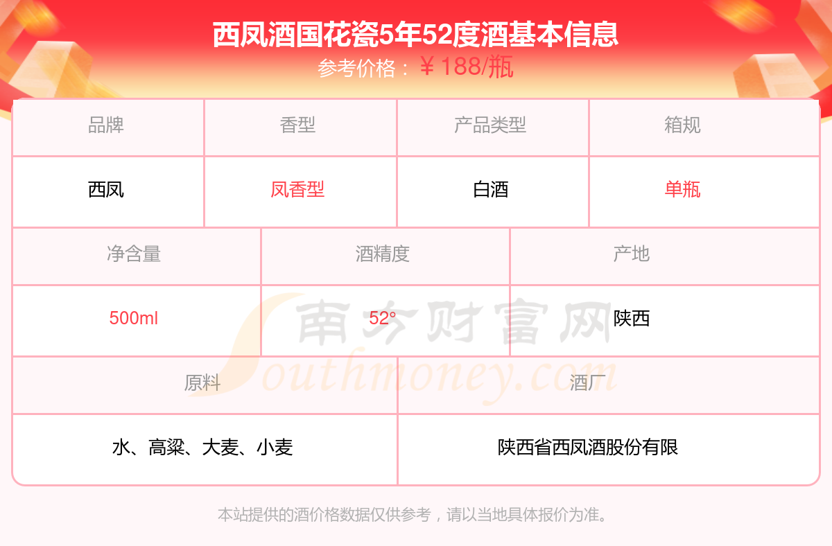 西鳳酒國花瓷5年52度基本信息