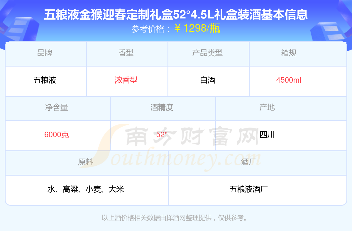 五糧液金猴迎春定制禮盒52°4.5L禮盒裝基本信息
