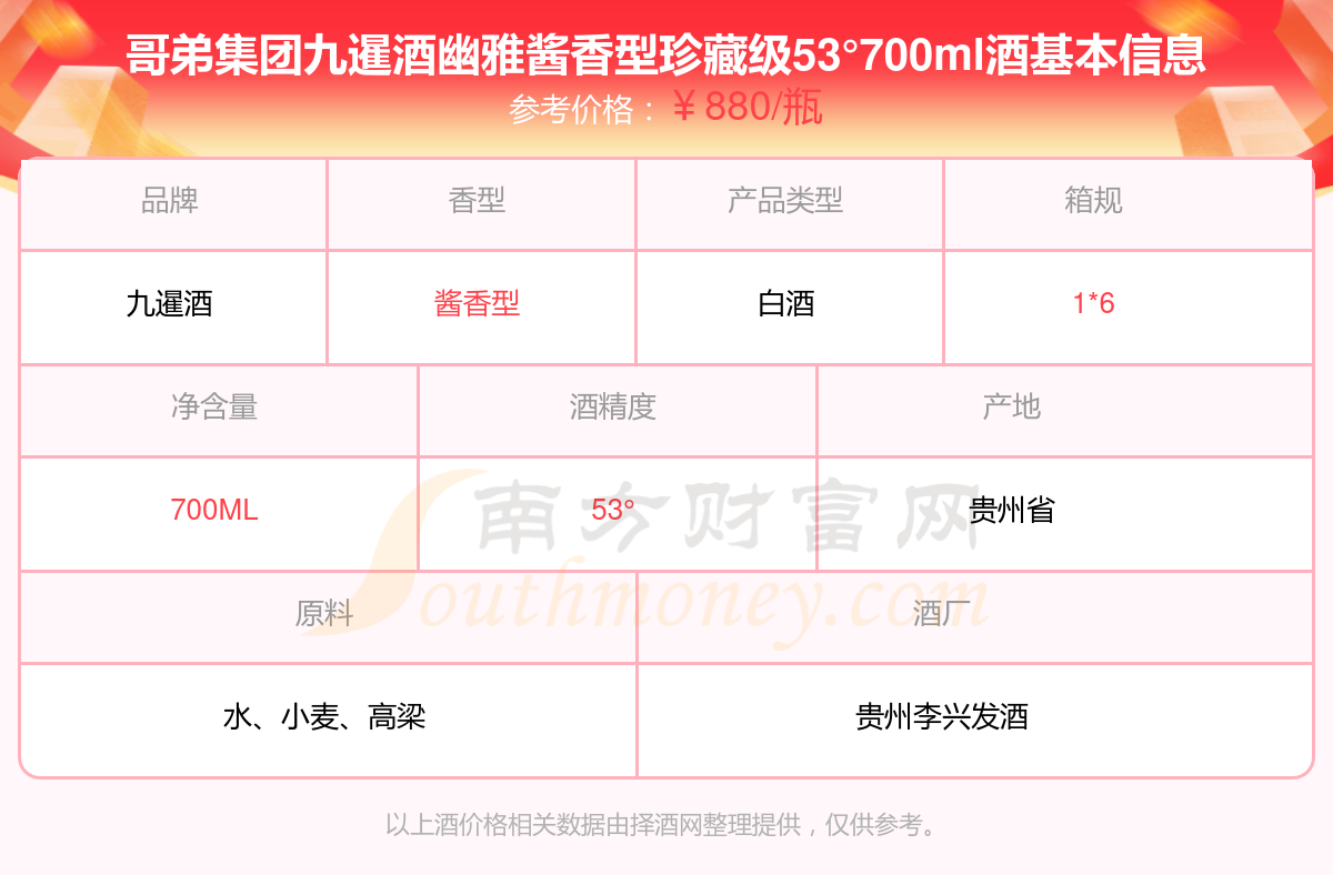 哥弟集團(tuán)九暹酒幽雅醬香型珍藏級(jí)53°700ml基本信息