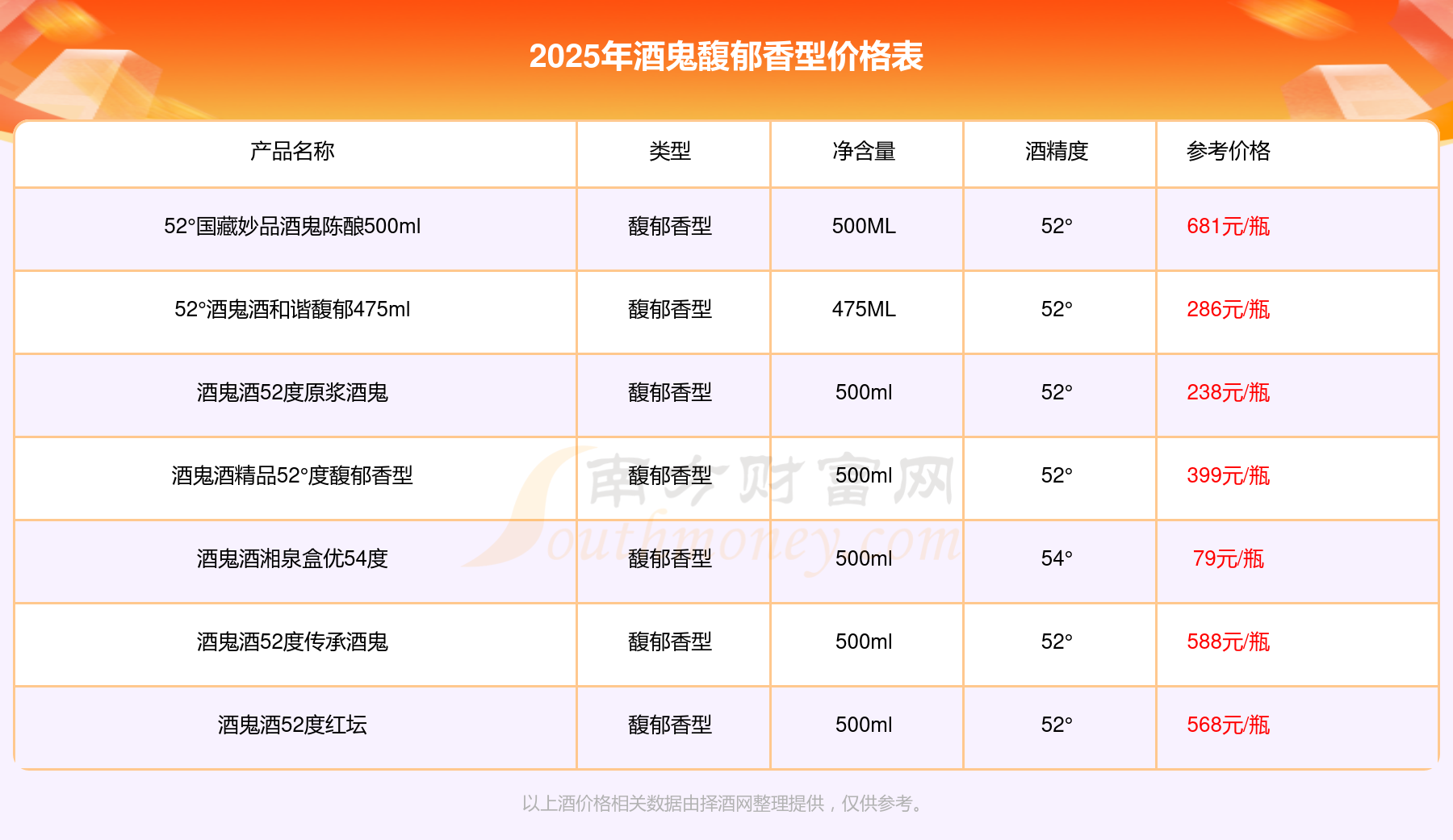 2025年酒鬼馥郁香型酒52°國(guó)藏妙品酒鬼陳釀500ml、酒鬼酒52度傳承酒鬼、酒鬼酒52度紅壇、酒鬼酒精品52°度馥郁香型等最新價(jià)格如下: