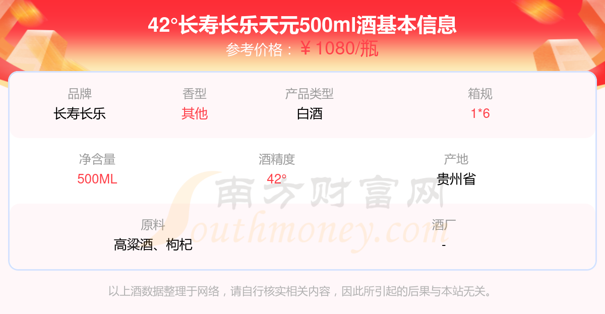 42°長壽長樂天元500ml酒多少一瓶2025參考價(jià)