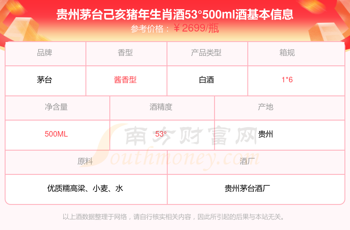 貴州茅臺己亥豬年生肖酒53°500ml基本信息