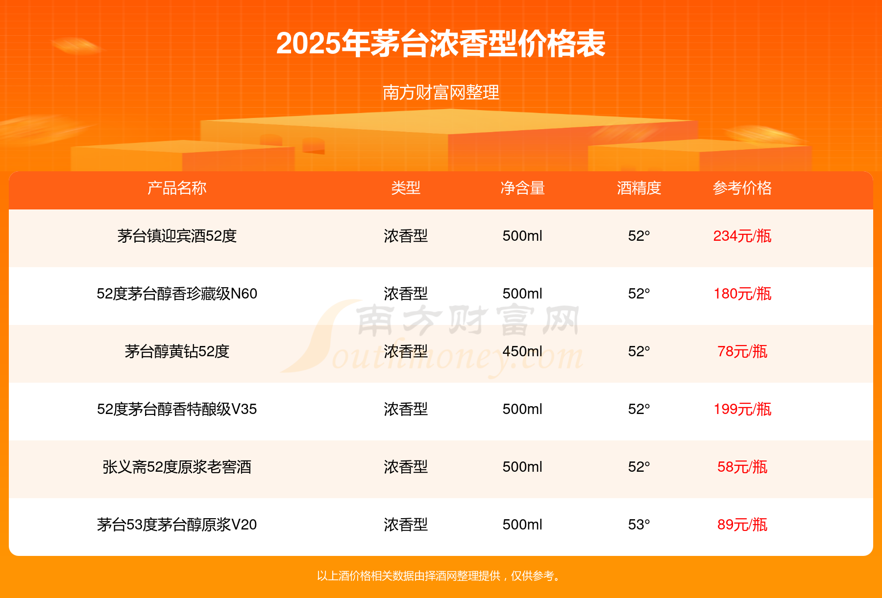 2025茅臺(tái)濃香型酒最新價(jià)格:
