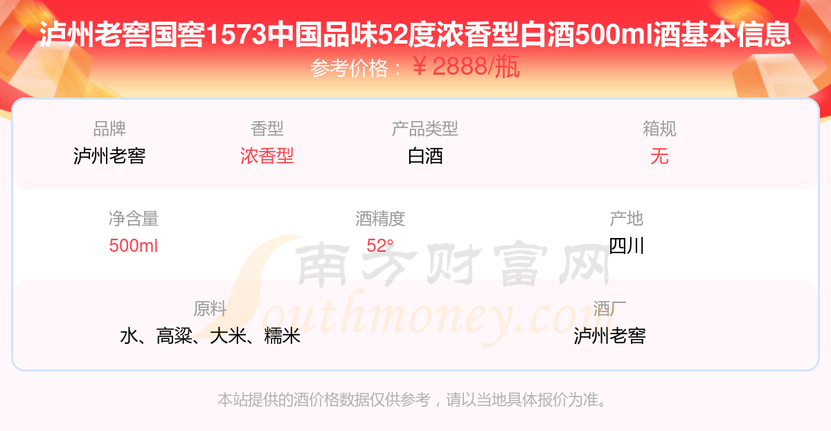 瀘州老窖國(guó)窖1573中國(guó)品味52度濃香型白酒500ml基本信息