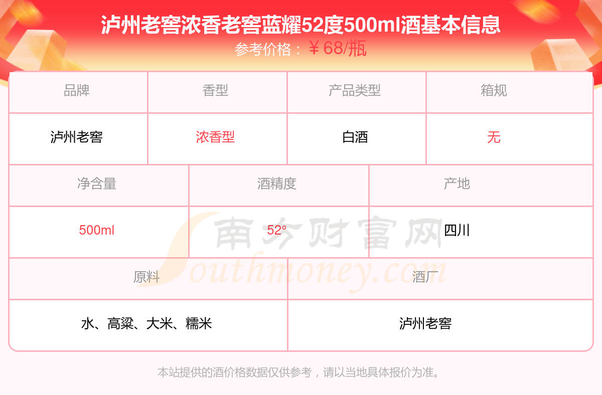瀘州老窖濃香老窖藍(lán)耀52度500ml基本信息