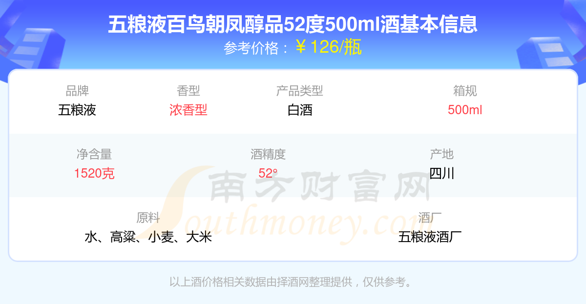 五糧液百鳥(niǎo)朝鳳醇品52度500ml基本信息