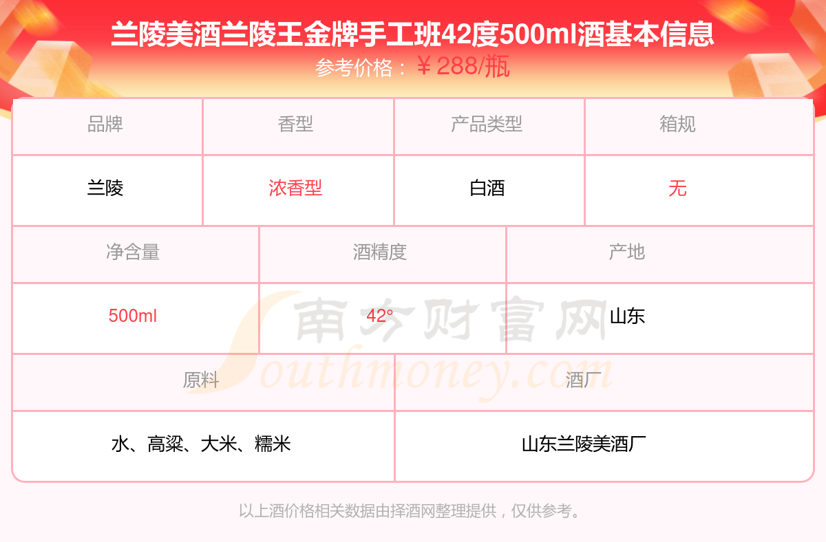 蘭陵美酒蘭陵王金牌手工班42度500ml基本信息