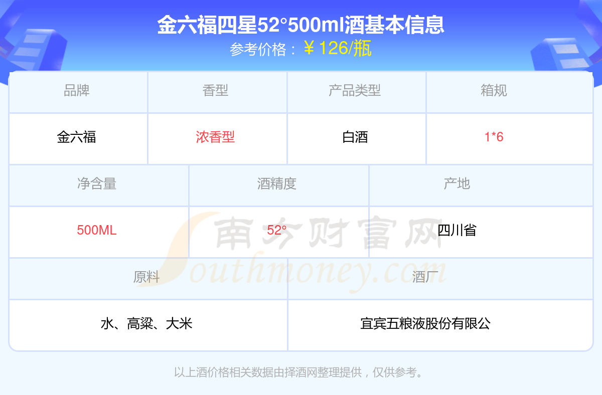 金六福四星52°500ml基本信息