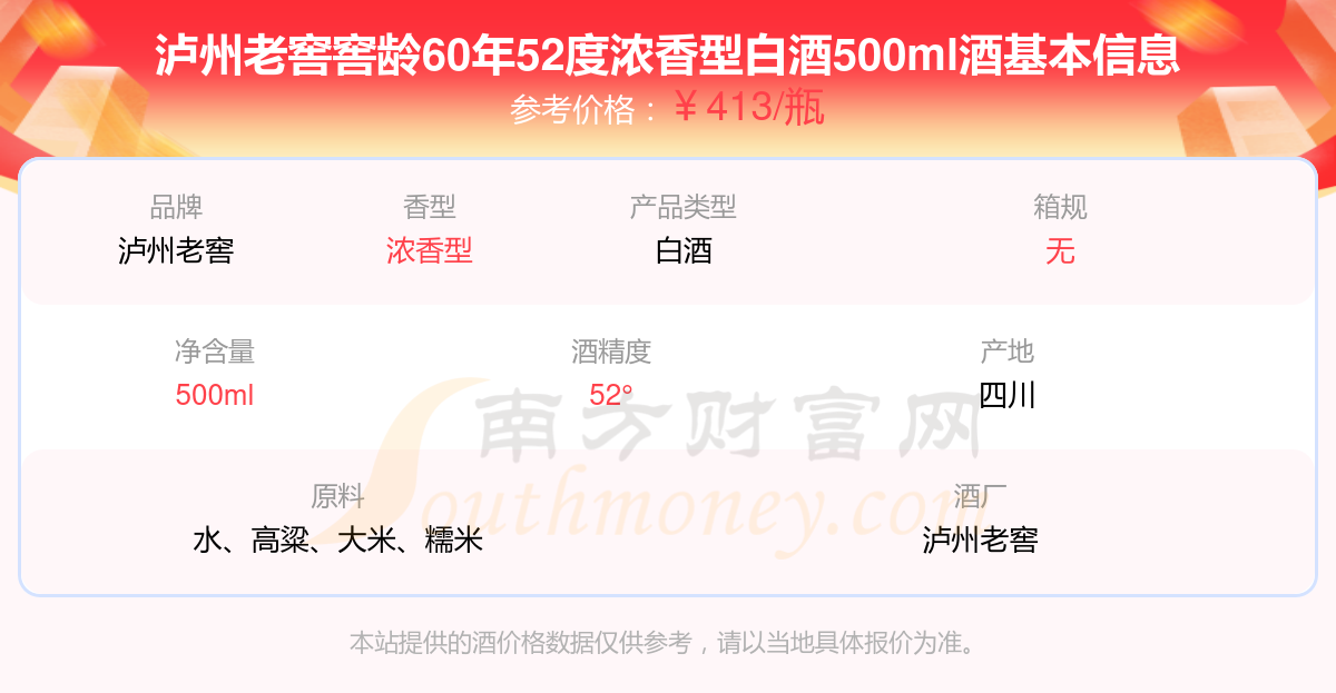 本站提供的酒價(jià)格數(shù)據(jù)僅供參考,請(qǐng)以當(dāng)?shù)鼐唧w報(bào)價(jià)為準(zhǔn)。