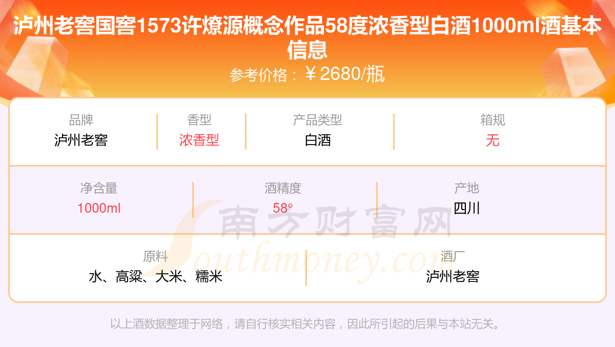 瀘州老窖國窖1573許燎源概念作品58度濃香型白酒1000ml基本信息