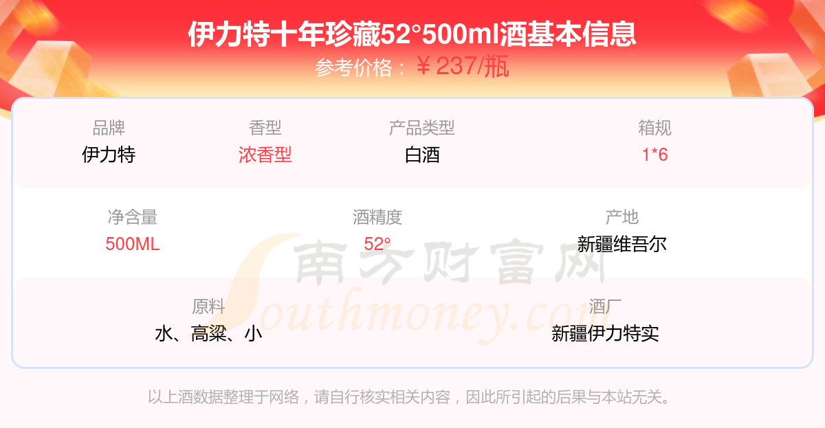 伊力特十年珍藏52°500ml基本信息