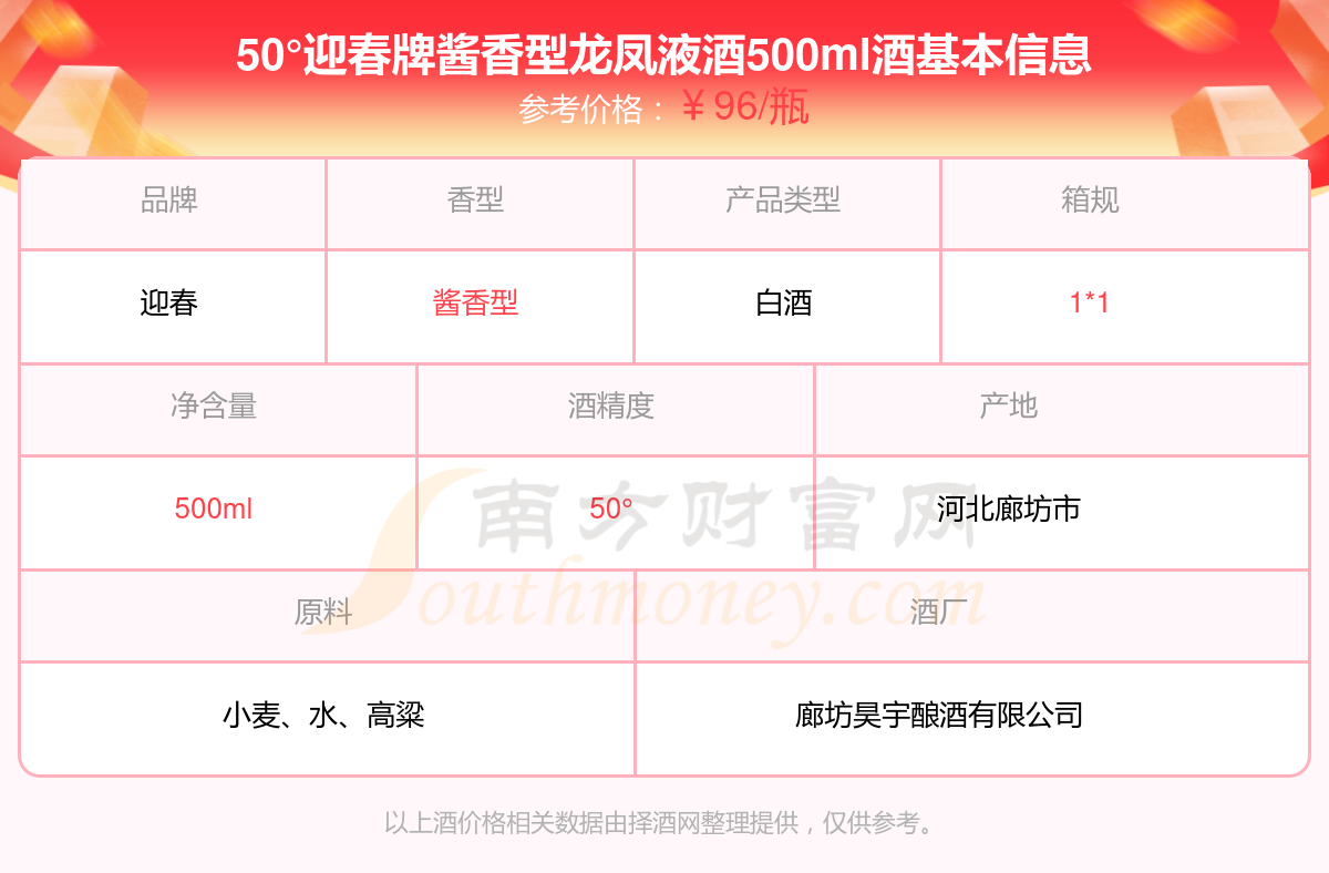 50°迎春牌醬香型龍鳳液酒500ml基本信息