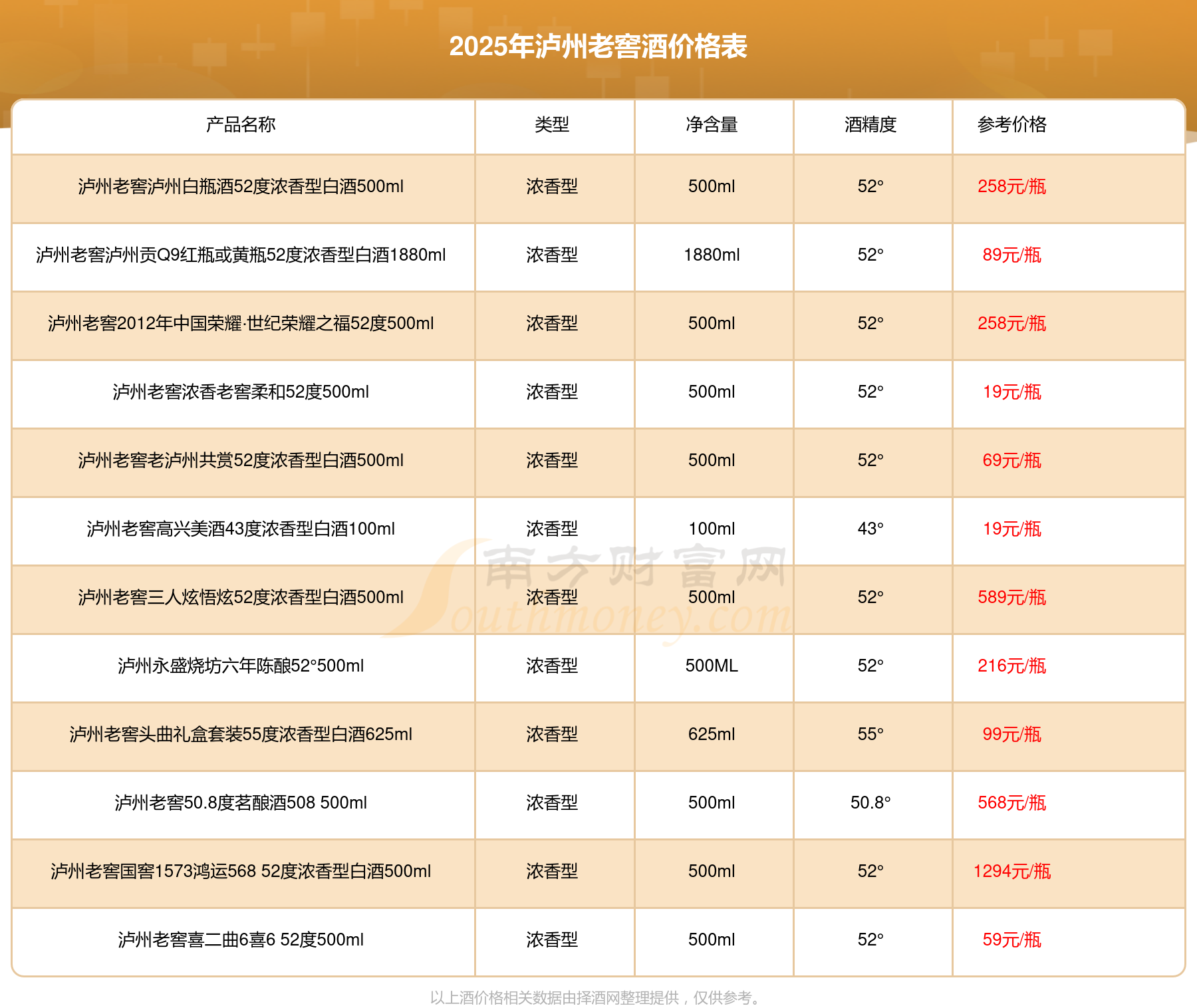 瀘州老窖酒最新價(jià)格2025: