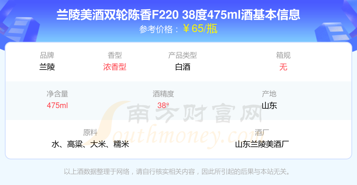 蘭陵美酒雙輪陳香F220 38度475ml基本信息